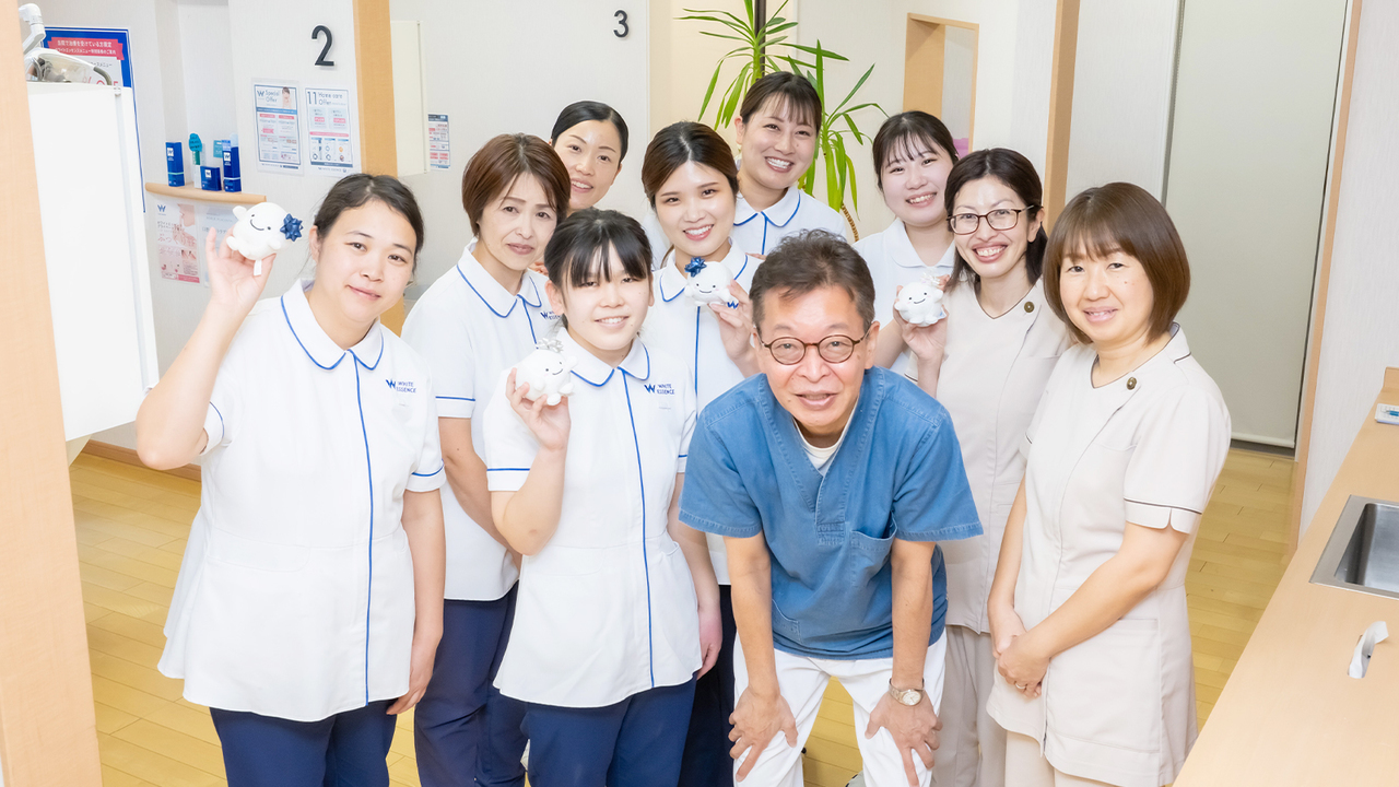 当院は、入れ歯治療、予防歯科、ホワイトニングに力を入れ、お口の健康を通して、患者さまが毎日笑顔で過ごせるようお手伝いをする歯科医院です。